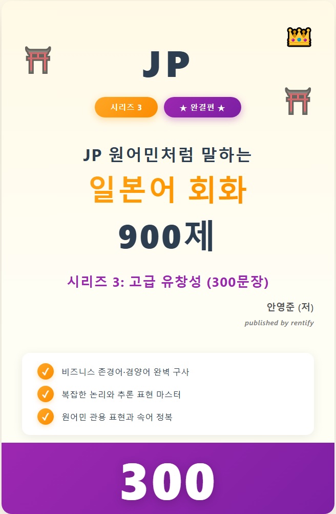 JP 원어민처럼 말하는 일본어 회화 900제 시리즈 3: 고급 유창성 (300문장)