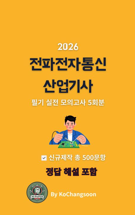 전파전자통신산업기사는 전자회로, 통신이론, 전파공학, 전자계산 기초 등 폭넓은 이론 이해와 계산 능력을 동시에 요구하는 시험이다. 본서는 최신 출제경향을 철저히 분석하여 지필시험에 최적화된 실전 모의고사 5회분(총 500문항)을 완전 신규로 구성하였다. 각 문항은 사지선다형으로 실제 시험과 동일한 난이도를 반영하였으며, 전 문항에 정확한 정답과 상세 해설을 수록하여 단순 암기가 아닌 개념 이해 중심의 학습이 가능하도록 하였다. 본서를 통해 실전 감각을 극대화하고 합격에 한 걸음 더 다가가길 바란다.