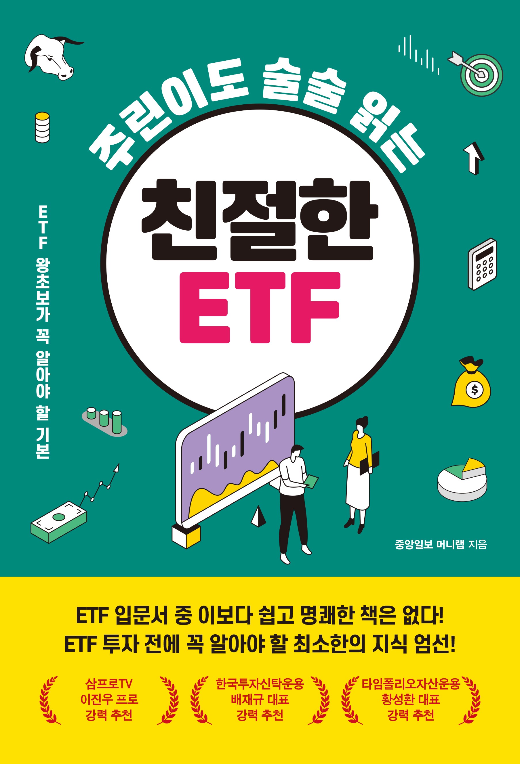 이러한 입문자들의 고민을 해결하기 위해 〈중앙일보 머니랩〉의 베테랑 기자들이 뭉쳤다. ETF의 기본 개념이나 어려운 투자용어, 미국 직투에 이르기까지 복잡하게 느껴질 수 있는 내용을 알기 쉽게 풀어냈다. ‘짚어주기’식 추천 보다는 ETF를 이해하고 평생 투자에 활용할 수 있도록 하는 데 초점을 맞추었다. 급변하는 국제 정세와 달러화의 강세 속에서, 주식 시장에는 온갖 투자 정보가 넘쳐나지만, 무엇을 믿어야 할지 알 수 없는 혼란스러운 시대다. ETF는 개인투자자들에게 가장 합리적이고 효율적인 투자 수단 중 하나지만, 구조와 특성을 제대로 이해하지 못할 경우 혼란을 키울 수 있다. 그런 점에서 이 책은 ETF 입문자들에게 훌륭한 길잡이가 되어줄 것이다.