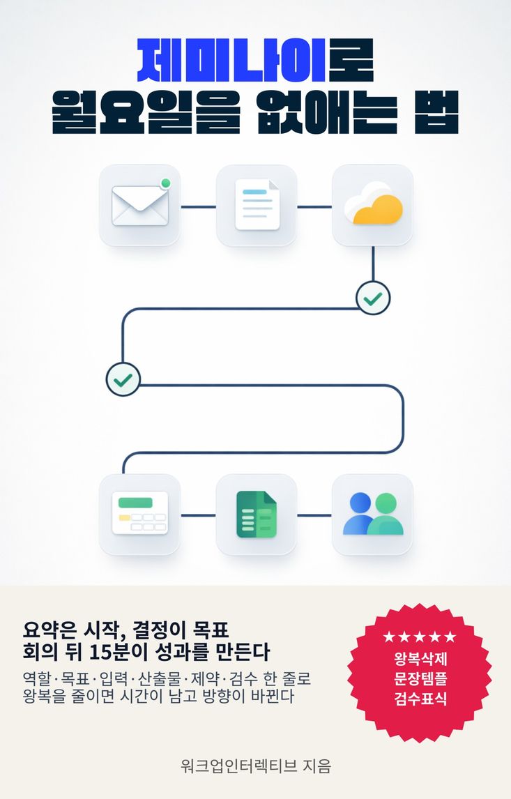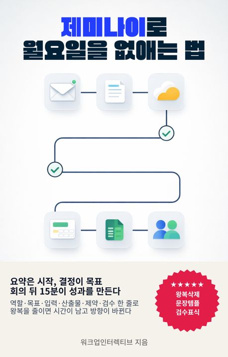 월요일이 무거운 건 당신이 느려서가 아니라, 입력이 문장으로 정렬되지 않아서다. 받은편지함, 공유 문서, 드라이브 파일, 시트 숫자, 회의 요약이 따로따로 흩어져 있으면 사람은 읽기와 판단을 반복하고, 그 반복이 한 주의 속도를 갉아먹는다. 이 책은 Google Workspace의 흐름을 바꾸는 가장 단순한 레버를 제시한다. 도구를 더 추가하는 대신, 한 문장으로 입력을 묶고 기준을 고정하라. 무엇을 오늘 끝낼지, 무엇을 이번 주로 넘길지, 누가 언제까지 무엇을 완료로 볼지, 확실한 것과 확인이 필요한 것을 어디서 갈라야 하는지까지 문장 하나로 통과시키는 방법을 단계별로 안내한다. Gmail에서는 요약과 회신과 후속조치를 한 번에 이어 붙이고, Docs에서는 요약을 결재 가능한 보고서로 변환하며, Drive에서는 최신과 기준을 선언해 혼선을 끊고, Sheets에서는 숫자를 의사결정 문장으로 연결해 오해를 줄이고, Meet에서는 합의와 결정과 요청을 분리해 실행을 남긴다. 결과는 단순한 생산성 향상이 아니다. 되묻기가 줄고, 수정 왕복이 줄고, 누락이 줄면서 월요일의 체감이 가벼워진다. 이번 주를 시작할 때마다 ‘어디부터 손대지’라는 질문이 떠오른다면, 이제는 문장을 바꿔 월요일을 통과시킬 차례다.