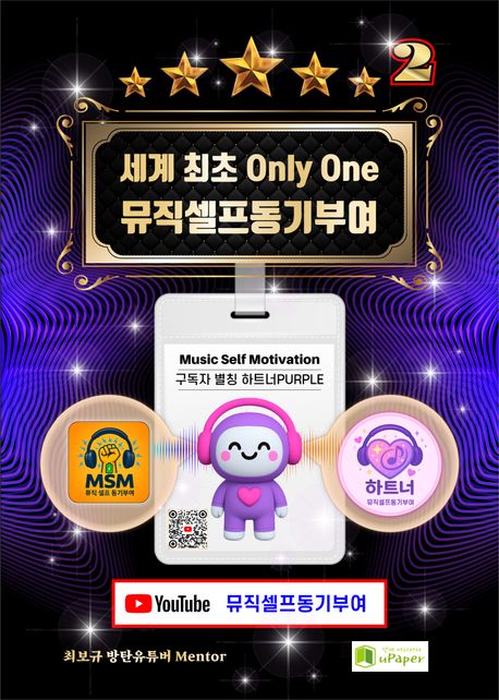 ▶ 30,000명 심리 상담, 코칭으로 알게 된 단 하나의 사실이 있습니다. 90% 사람들이 감정적으로 힘들 때 원하는 것은 바로 즉시 케어 받는 것입니다. 힘들고 우울한 상황, 스트레스 받는 상황, 외로운 상황, 위로받고 싶은 상황, 상처받은 상황이 왔을 때 상황에 맞는 QR코드 스캔으로 바로 즉시 뮤직비디오 플레이로 케어를 해줄 것입니다. 뮤직셀프동기부여(유튜브, 책)는 당신의 감정컨트롤 보조배터리가 되어 줄 것이다. 세상, 현실, 주위 사람들로부터 감정 배터리가 소모될 때, 바로 즉시 감정 배터리를 충전해 줄 것이다.