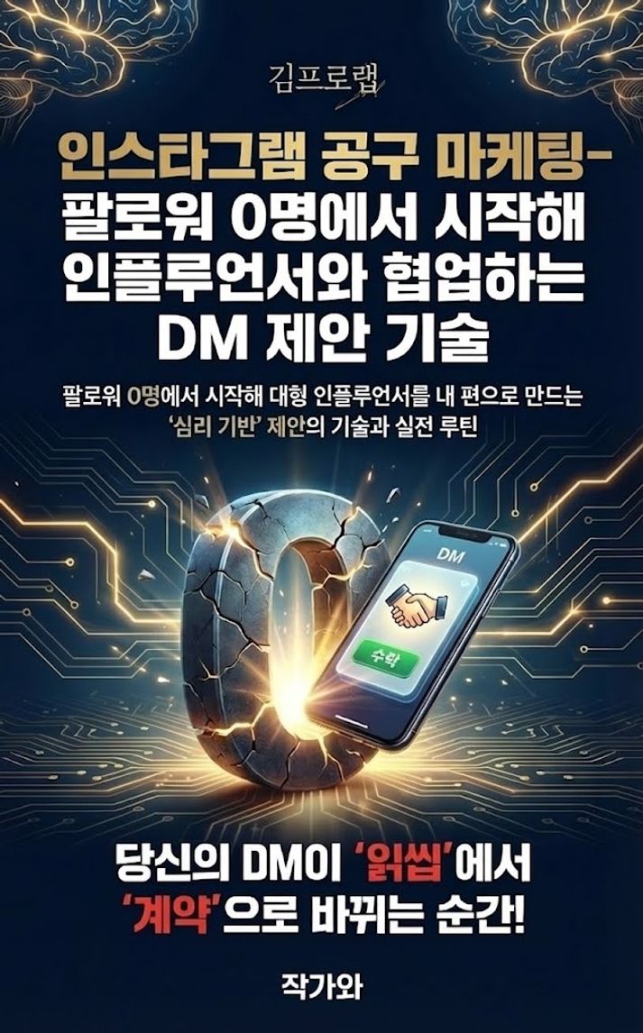 이 책은 단순히 '운 좋게' 공구를 성사시키는 법을 말하지 않습니다. 팔로워가 한 명도 없는 상태에서도 심리학에 기반한 DM 제안 전략과 시스템화된 운영 루틴을 통해, 인플루언서가 먼저 같이 일하고 싶어 하는 '대체 불가능한 파트너'가 되는 실전 지침서입니다. 일회성 협업을 넘어 평생의 수익 구조를 만드는 마케팅의 정수를 담았습니다.