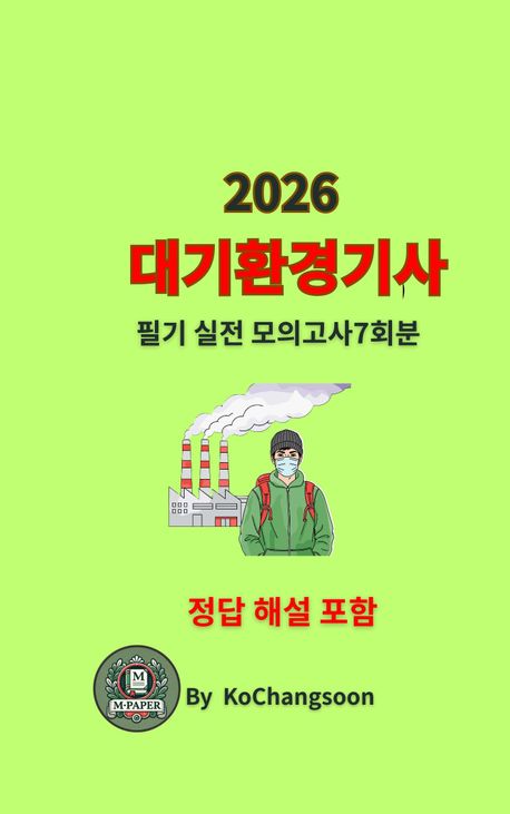 『2026• 대기환경기사 필기 실전 모의고사 7회분』은 최신 출제 경향을 반영한 700문항으로 실전 적응력을 높여준다. 핵심 이론 요약과 상세 해설로 개념을 탄탄히 정리하며, CBT 대비 구성으로 반복 학습과 단기 합격을 동시에 돕는 최적의 수험서이다.