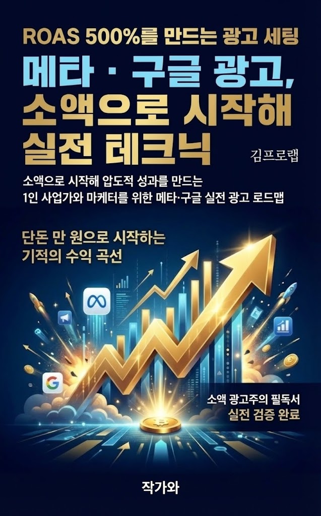 화려한 이론 대신, ROAS 500%를 만들고 지켜내는 데일리 최적화 루틴, 멘탈 관리, 자동화 시스템 등 지금 당장 내 사업에 적용할 수 있는 피땀 어린 현장 노하우를 담았습니다.