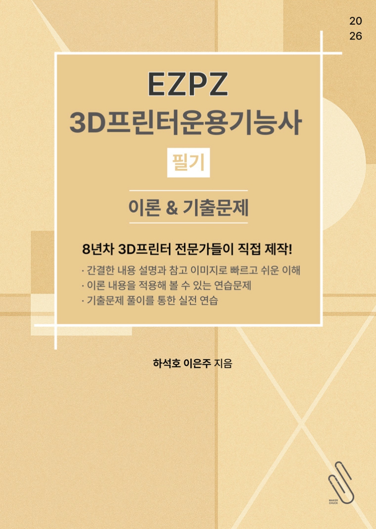 본 교재를 만든 메이커척은 2018년도 3D프린터운용기능사 1회 합격자이자, 이후 현재까지 3D프린터운용기능사 자격증 클래스를 운영해 왔습니다.