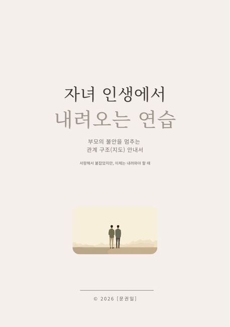 저자는 부모의 사랑이 지나치게 책임으로 확장될 때, 관계가 어떻게 무거워지는지 경험을 통해 통찰해왔으며 자녀를 내려놓는다는 것은 포기가 아니라 신뢰라는 사실을, 그리고 부모가 자신의 삶을 다시 회복하는 과정임을 이 책을 통해 전하고자 합니다.