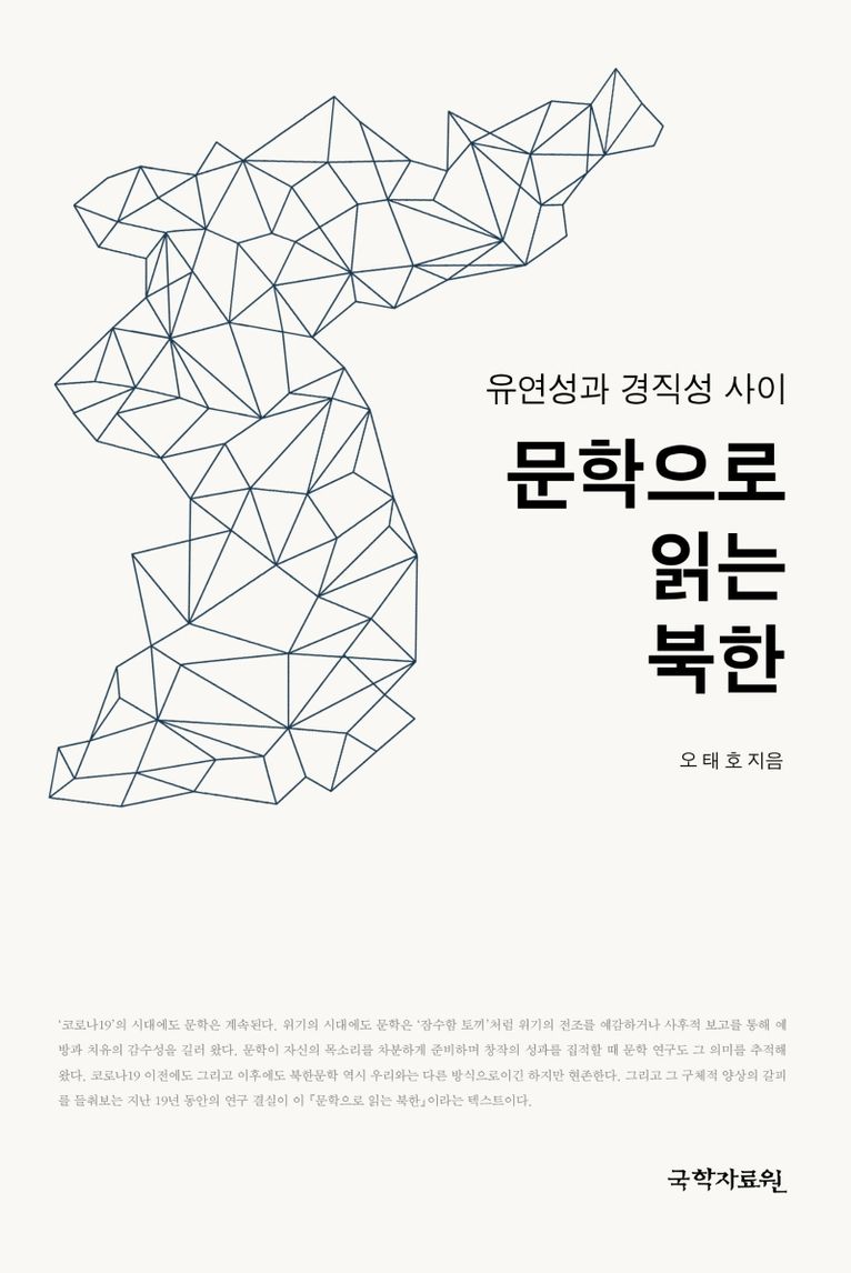 ‘코로나19’의 시대에도 문학은 계속된다. 위기의 시대에도 문학은 ‘잠수함 토끼’처럼 위기의 전조를 예감하거나 사후적 보고를 통해 예방과 치유의 감수성을 길러 왔다. 문학이 자신의 목소리를 차분하게 준비하며 창작의 성과를 집적할 때 문학 연구도 그 의미를 추적해 왔다. 코로나19 이전에도 그리고 이후에도 북한문학 역시 우리와는 다른 방식으로이긴 하지만 현존한다. 그리고 그 구체적 양상의 갈피를 들춰보는 지난 19년 동안의 연구 결실이 이 ?문학으로 읽는 북한?이라는 텍스트이다.‘코로나19’의 시대에도 문학은 계속된다. 위기의 시대에도 문학은 ‘잠수함 토끼’처럼 위기의 전조를 예감하거나 사후적 보고를 통해 예방과 치유의 감수성을 길러 왔다. 문학이 자신의 목소리를 차분하게 준비하며 창작의 성과를 집적할 때 문학 연구도 그 의미를 추적해 왔다. 코로나19 이전에도 그리고 이후에도 북한문학 역시 우리와는 다른 방식으로이긴 하지만 현존한다. 그리고 그 구체적 양상의 갈피를 들춰보는 지난 19년 동안의 연구 결실이 이 ?문학으로 읽는 북한?이라는 텍스트이다.