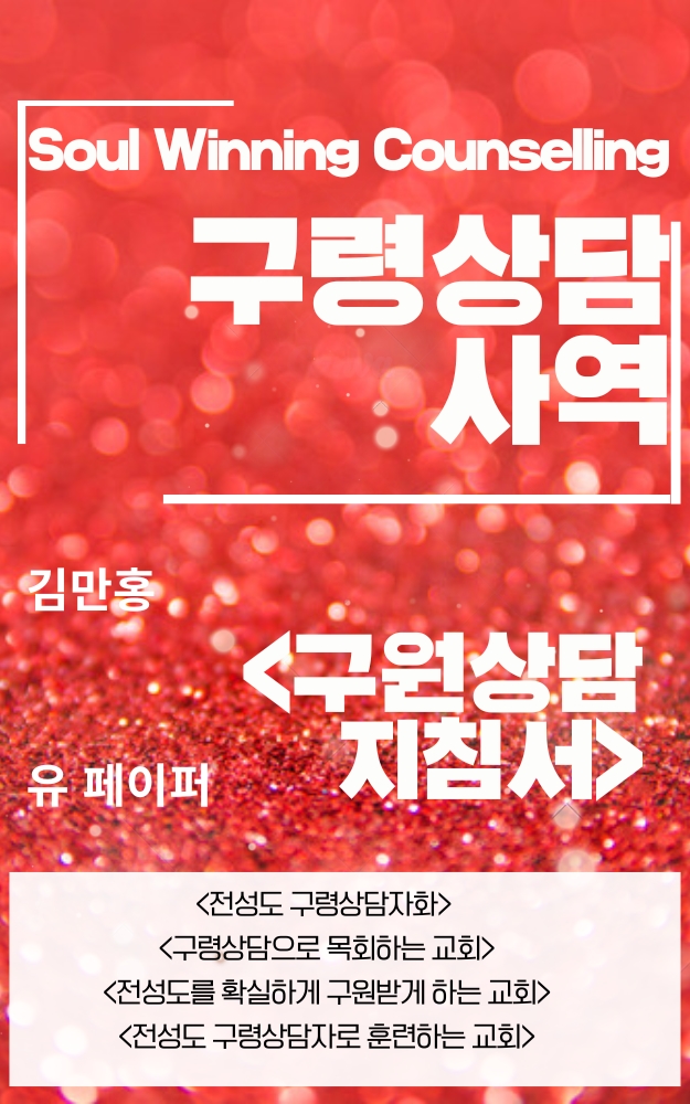 《전자북 출판》구원상담 예수영접, 창조적 자존감, 내면에 자리 잡은 어린 시절의 상처 치유. 세계복음화 비전, 기독교 인지행동치료, 대화상담, 그리스도인의 성품, 하나님의 뜻, 의미치료, 십일조, 질병 치유에 대한 믿음, 구원상담문, 행복한 부부생활, 축복을 심고 나누는 .....